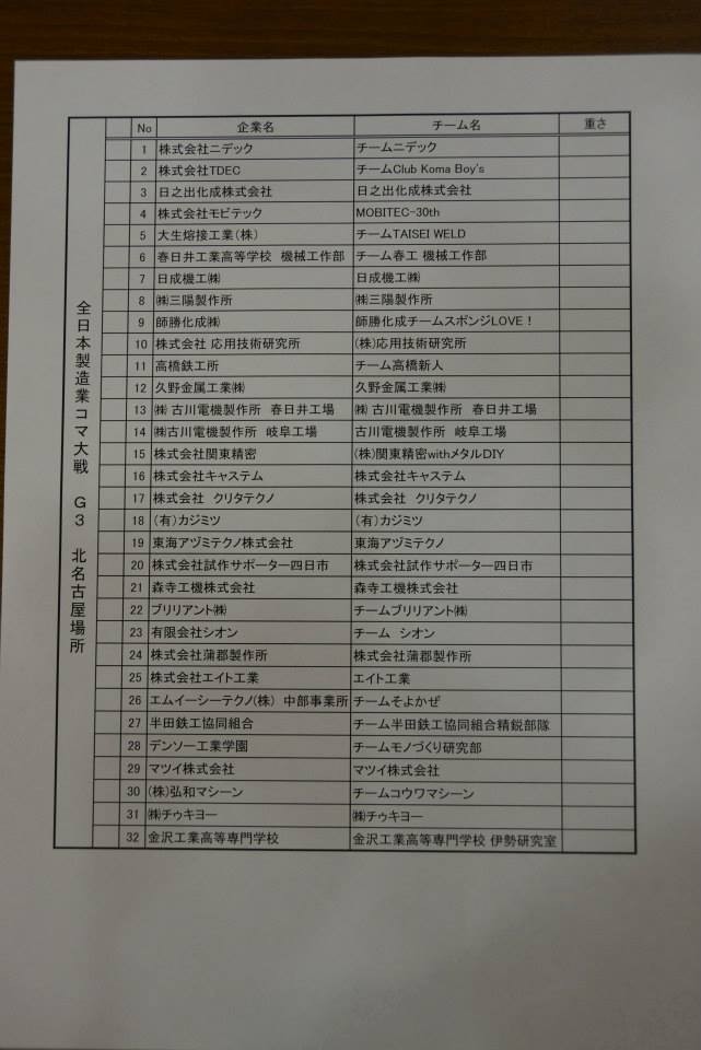 全日本製造業コマ大戦 特別北名古屋場所 北名古屋市市民部門 (特別場所) |