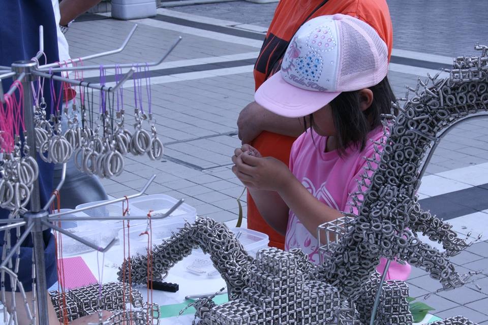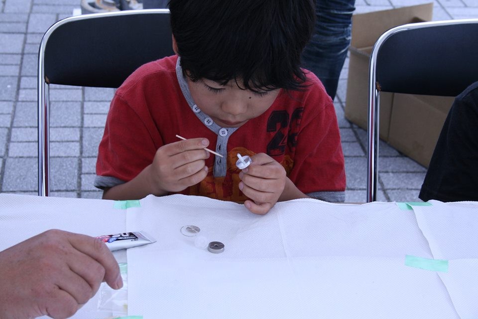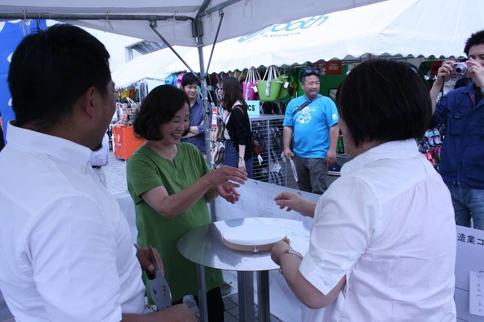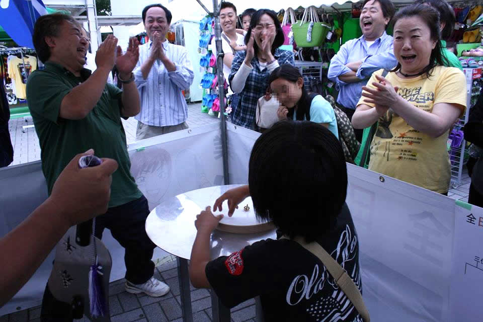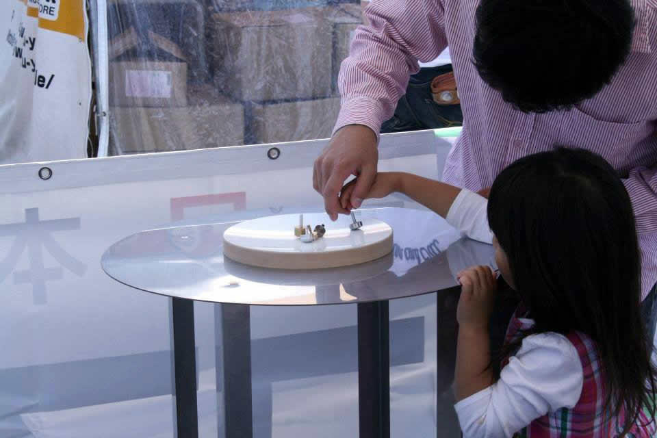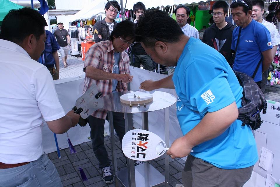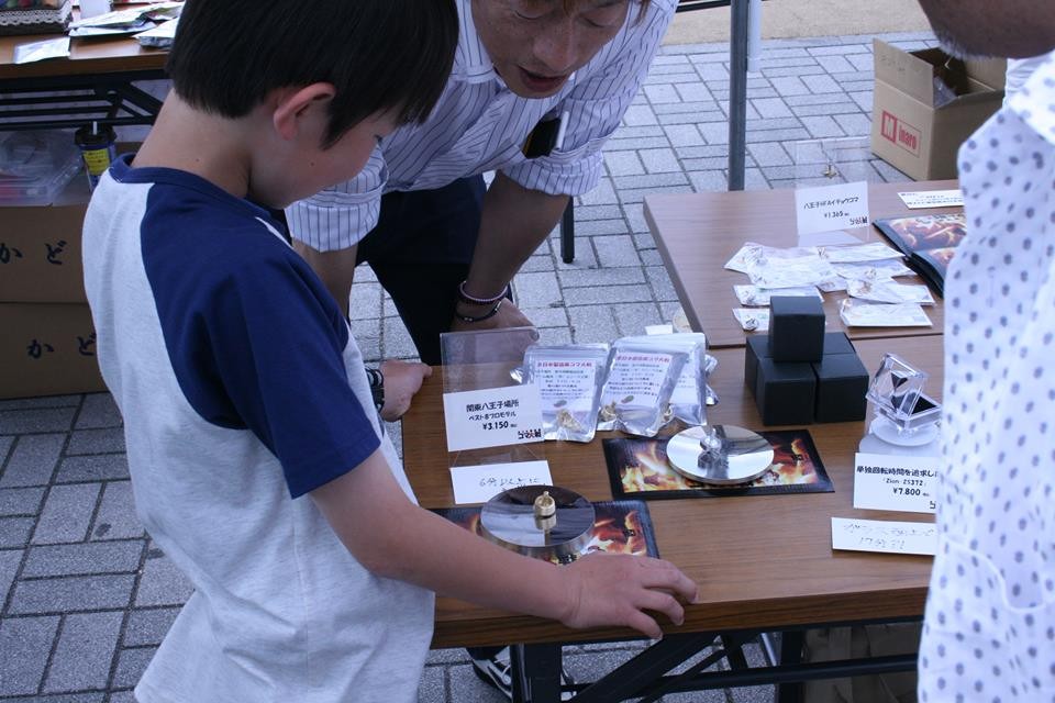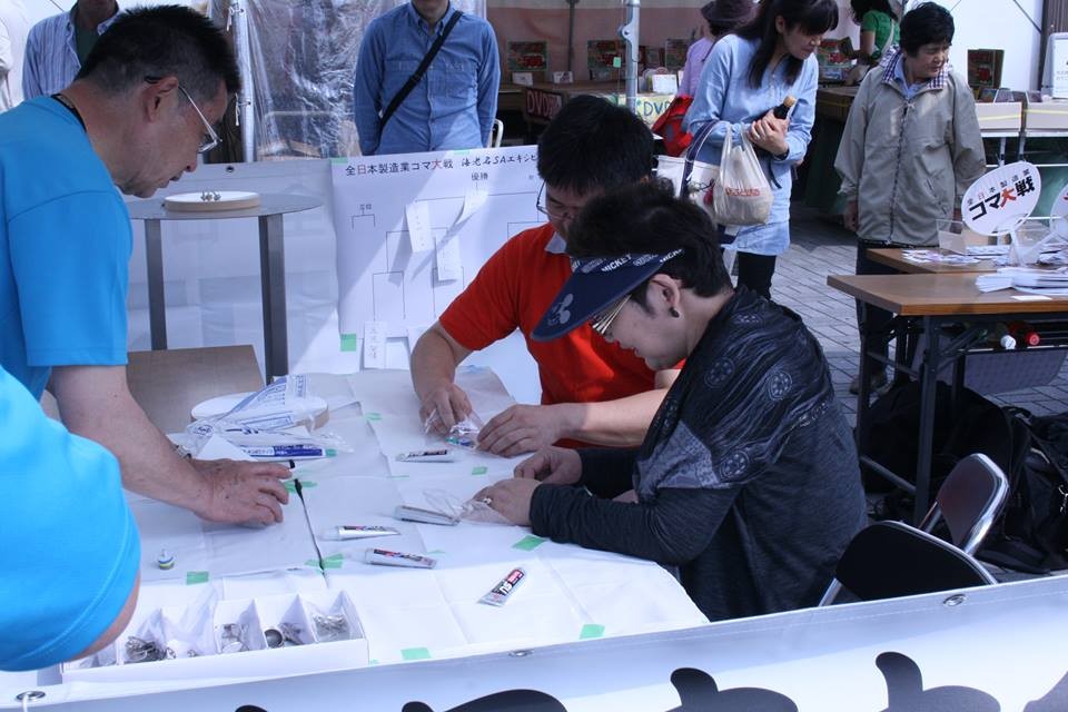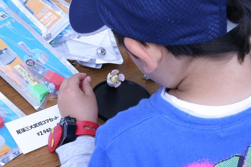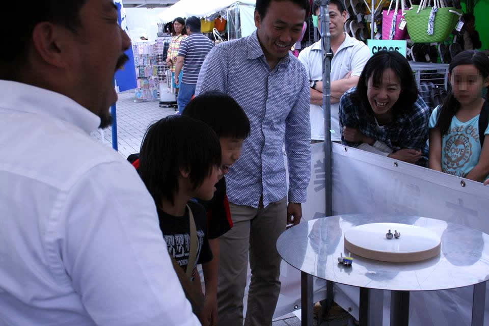 即席で子ども・親子・熟女対戦なども開催。コマの販売も行いました。